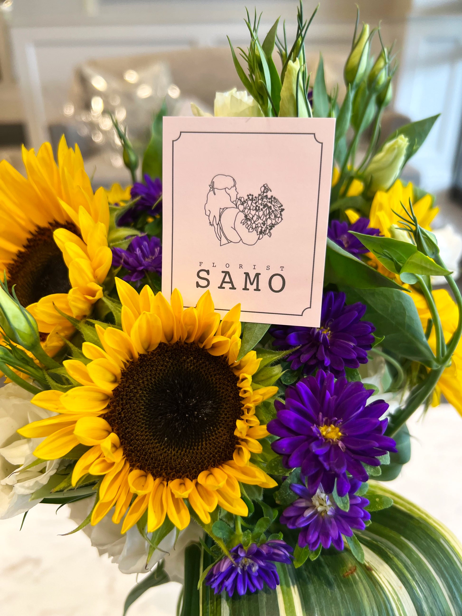 Sunflower, Lisianthus, Aster, Aspidistra-Variegated